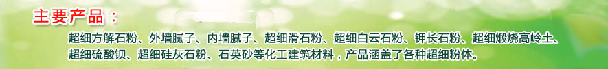 廣福建材集團(tuán)始建于1994年,是國(guó)內(nèi)較大規(guī)模的超細(xì)粉體加工企業(yè)。主要產(chǎn)品有超細(xì)方解石粉、外墻膩?zhàn)印?nèi)墻膩?zhàn)?、超?xì)滑石粉、超細(xì)白云石粉、鉀... ...詳細(xì)>>